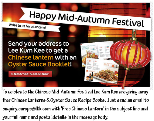 To celebrate the Chinese Mid-Autumn Festival Lee Kum Kee are giving away free Chinese Lanterns & Oyster Sauce Recipe Books. Just send an email to enquiry.europe@lkk.com with 'Free Chinese Lantern' in the subject line and your full name and postal details in the message body. Don't forget to say Please and Thank You.